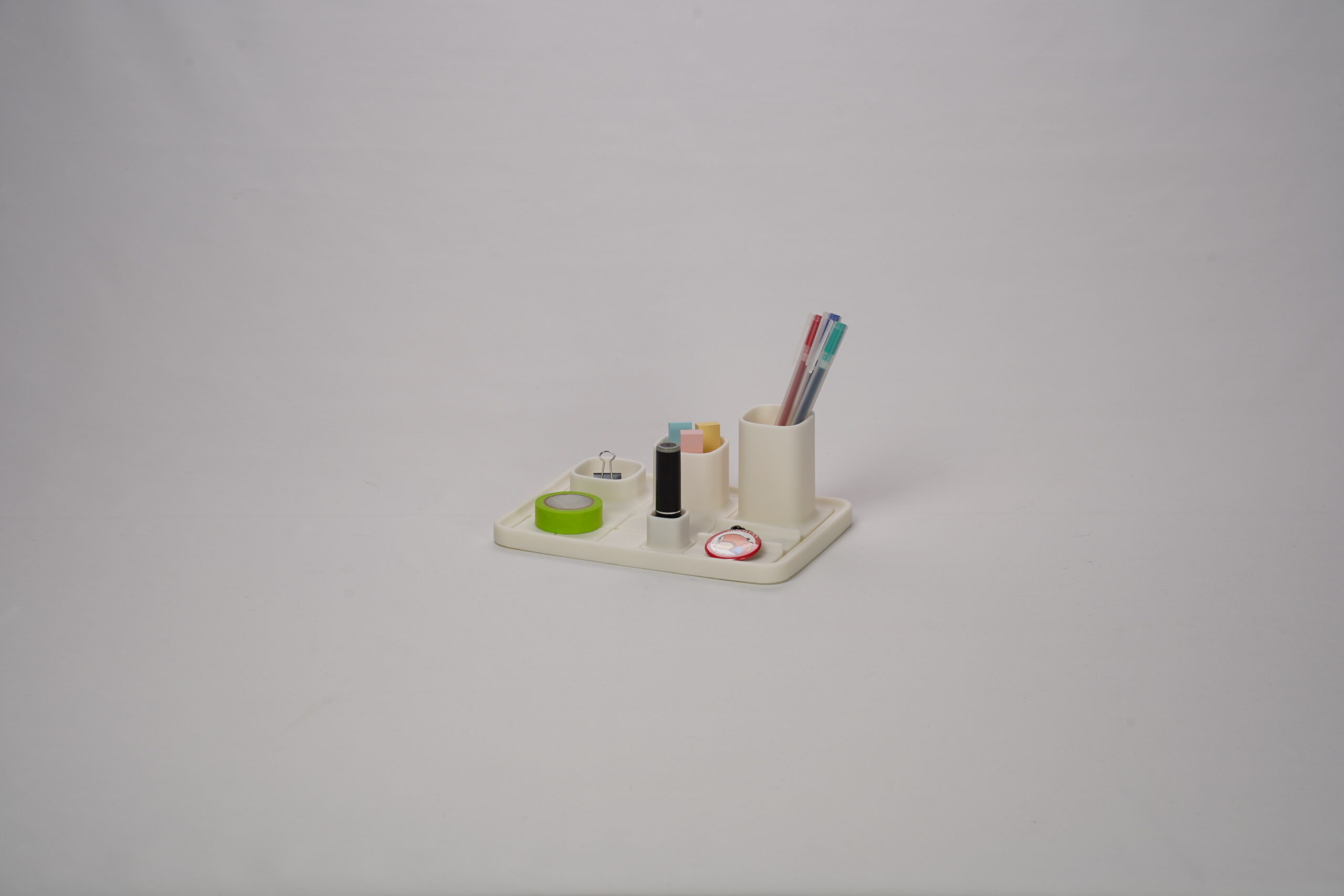 このペンスタンドは、タイル状のパーツを自由に組み替えて、自分だけの使いやすさをつくれる文房具。
