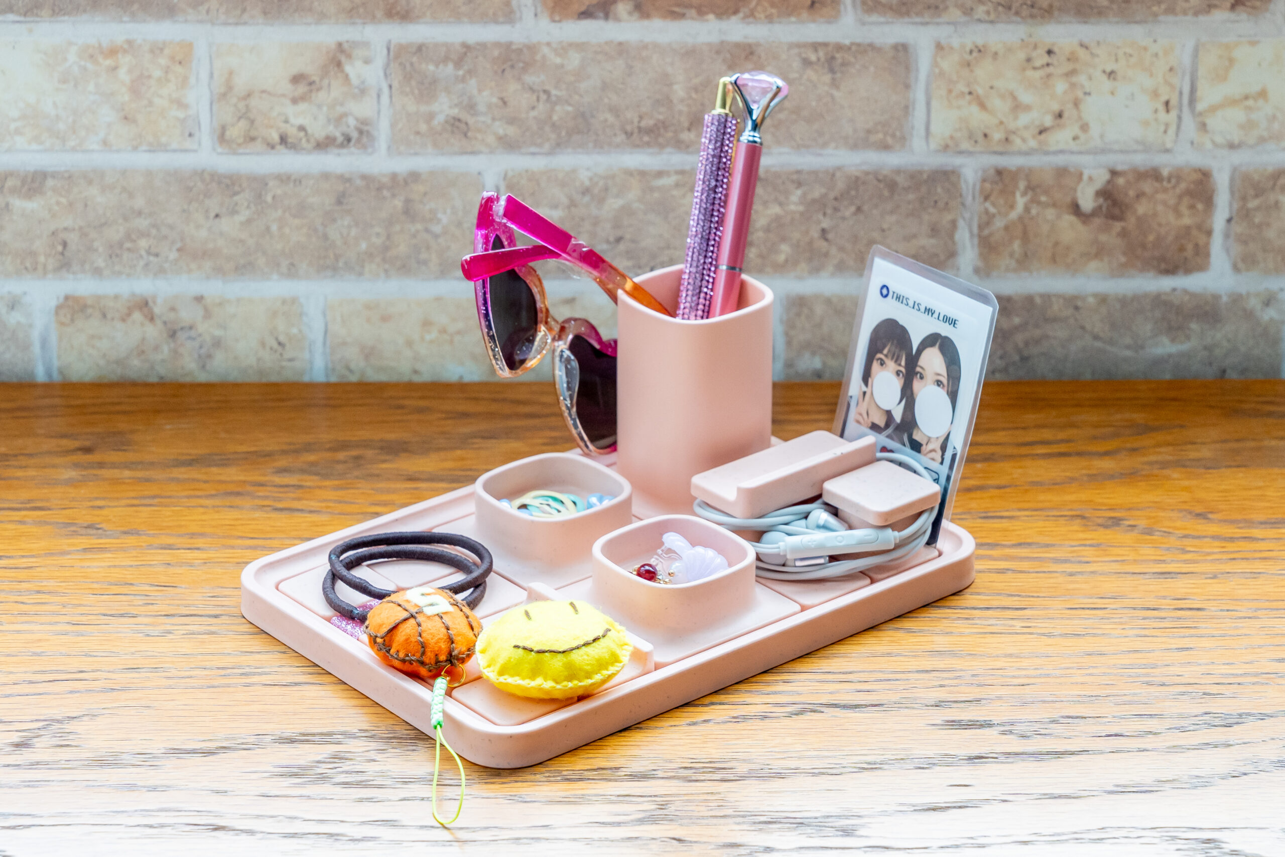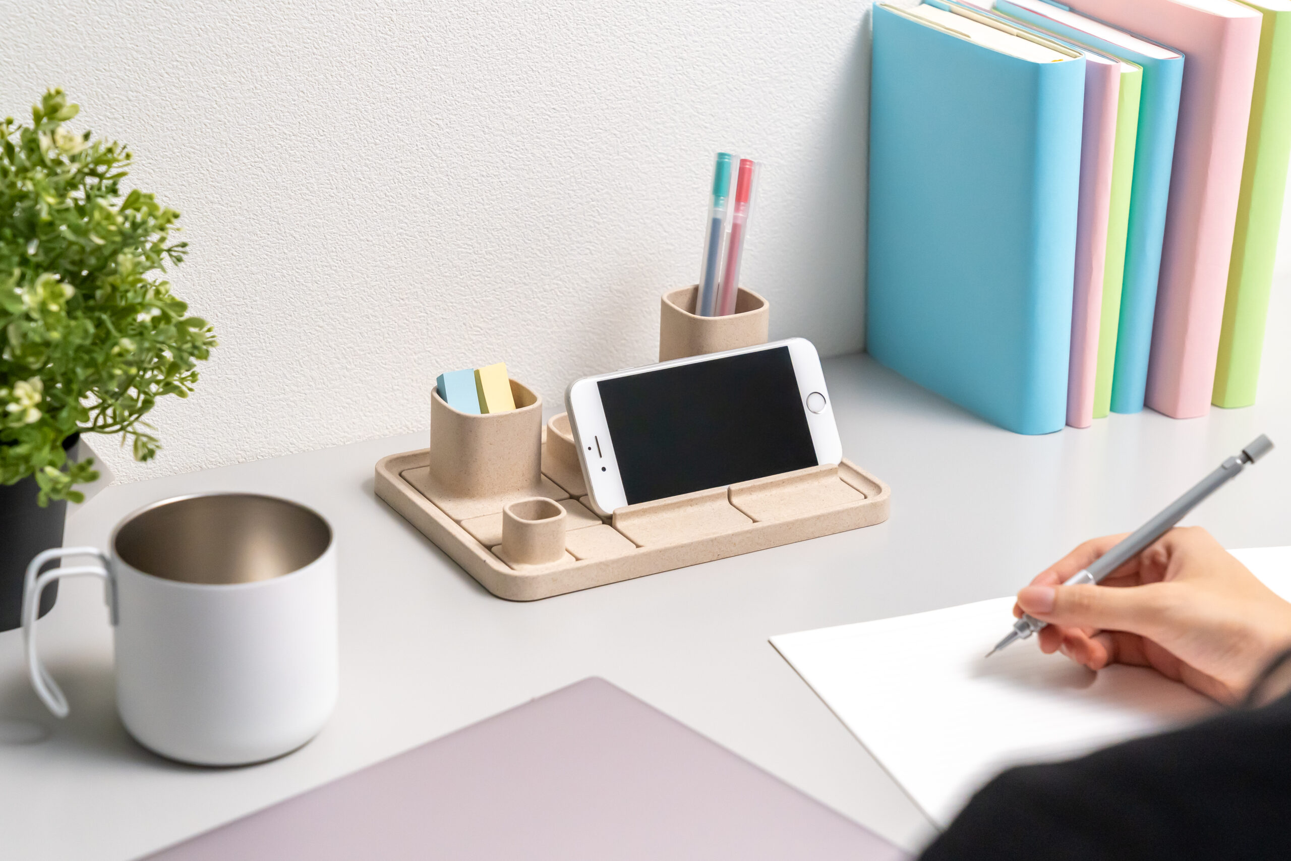 このペンスタンドは、タイル状のパーツを自由に組み替えて、自分だけの使いやすさをつくれる文房具。